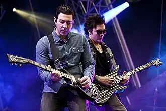 ![]() Avenged Sevenfold em 2016. Da esquerda para a direita: M. Shadows, Zacky Vengeance, Johnny Christ, Synyster Gates e Brooks Wackerman | |