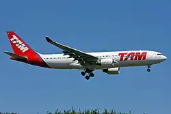 Um Airbus A330, jato de grande porte, da empresa aérea brasileira TAM Linhas Aéreas.
