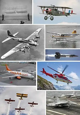 Um grande progresso foi feito no campo da aviação nas décadas de 1920 e 1930, como o voo transatlântico de Charles Lindbergh, em 1927, e o voo transpacífico de Charles Kingsford Smith no ano seguinte (1928). Richard Byrd tornou-se o primeiro piloto a pousar com um avião na Antártida continental durante uma expedição realizada entre 1928-1930[14] (ver: aviação polar). Um dos mais bem sucedidos projetos daquele tempo foi o Douglas DC-3 que veio a ser a primeira aeronave de uso de uma companhia aérea, que foi rentável para o transporte de passageiros, começando assim, a era moderna de aeronaves de transporte de passageiros. Com o início da Segunda Guerra Mundial, muitas cidades construíram aeroportos, e houve muitos pilotos profissionais disponíveis. A guerra trouxe inúmeras inovações para a aviação, incluindo o primeiro jato e foguetes de combustível líquido (ver: História dos foguetes).
