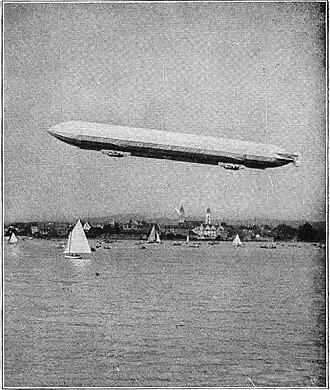 Outra tática testada pelos alemães entre 1915 e 1917 foi o dirigível. Conhecido mundialmente pelo nome de Zeppelin, a aeronave inflada com hidrogênio aterrorizou as cidades ao leste da Inglaterra e a capital Londres com inesperados bombardeiros. A evolução das defesas britânicas e dos armamentos especializados em abater aviões, no entanto, aposentaram os dirigíveis das estratégias alemãs.[2]