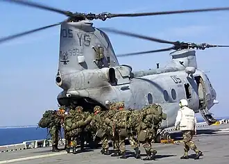 - Operações Anfíbias, desempenhada por helicópteros de transporte de assalto e de ataque e por caça-bombardeiros embarcados.