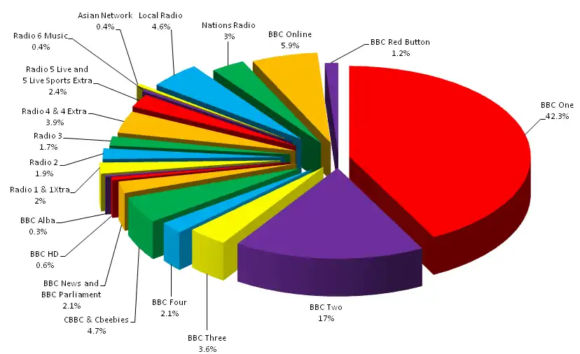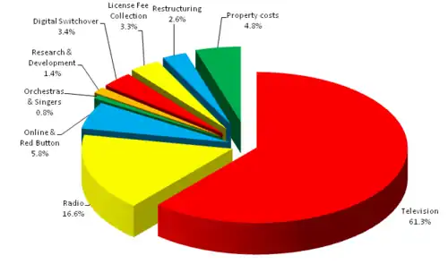 A BBC tem o segundo maior orçamento, quando comparada com outra qualquer emissora, sediada no Reino Unido, com uma despesa operacional de £ 4,8 mil milhões, em 2011/12. Ficando apenas atrás da British Sky Broadcasting, com uma despesa operacional de £ 5,9 mil milhões, e à frente da ITV, com £ 1,9 mil milhões.[21]