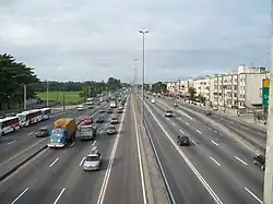 A Ponte Rio–Niterói, trecho da BR-101 sobre a Baía de Guanabara entre as cidades do Rio de Janeiro e de Niterói (RJ).
