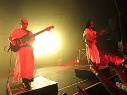 ![]() Babymetal se apresentando em 2023. Da esquerda à direita: Moametal, Su-metal e Momometal | |
