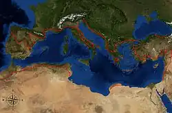A distribuição potencial na bacia mediterrânea da oliveira ´w um dos melhores indicadores biológicos da região mediterrânea.[1]