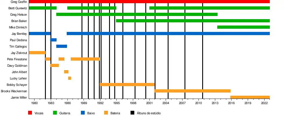 | Ex-integrantes | Jay Ziskrout Pete Finestone Paul Dedona Davy Goldman Greg Hetson Tim Gallegos John Albert Lucky Lehrer Bobby Schayer Brooks Wackerman |