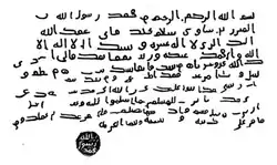 Fac-símile de uma carta enviada por Maomé a Munzir ibn-Sawa al-Tamimi, governador do Barém, em 628 d.C.