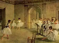 Na arte, o balé (/baˈlɛ/, do francês ballet, italiano balletto, grego ballizo: "dançar") é um estilo de dança criado nas cortes da Itália renascentista no século XV, posteriormente desenvolveu-se principalmente na França no século XVII como um tipo de "dança de concerto" (apresentações no palco acompanhadas de música erudita e renascentista) influenciando todo o vocabulário do balé.[1] É um estilo de dança que representa uma história através de movimentos graciosos muitas vezes executados nas pontas dos pés,[2] que tem as técnicas fundamentais para muitas outras formas de dança. A forma mais conhecida é o balé romântico ou "Ballet Blanc", que valoriza a bailarina focando no trabalho de pontas, fluidez e movimentos precisos.