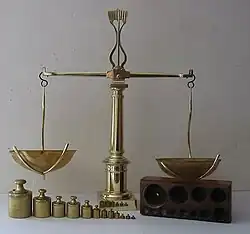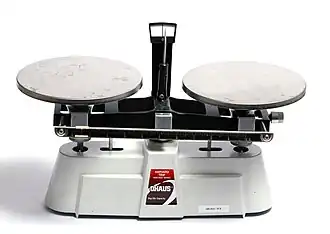 Balança (do latim bis - dois e linx - prato[1]) é um instrumento que mede a massa de um corpo.[2] A unidade usual para massa é o kg, por se tratar de uma unidade do SI. Portanto, o correto é dizer que as balanças medem as massas dos corpos e objetos, não o peso deles..[3] Contudo, embora a função primária da balança seja medir a massa, há balanças que, por meio de relações matemáticas simples, podem informar o valor aproximado do peso de um corpo.