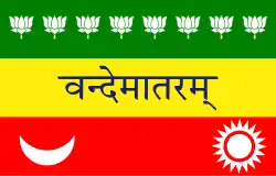 Em 22 de Agosto de 1907, Bhikaiji Cama desfraldou uma outra bandeira tricolor em Stuttgart, Alemanha. Esta possui o verde no topo, açafrão ao centro e vermelho embaixo. O verde significava o Islão e o açafrão para ambos o Hinduísmo e o Budismo. A bandeira tem oito lótus na banda verde, representando as oito províncias da Índia britânica. As palavras Vande Mataram, em idioma Devanágari, foram escritas na banda central. Na banda mais baixa, em direção ao mastro da bandeira existia uma lua crescente, e ao lado oposto, estava um sol. A bandeira foi desenhada por Bhikaiji Cama, Veer Savarkar e Shyamji Krishna Varma.[7] Depois do tumulto da Primeira Guerra Mundial, esta bandeira tornou-se conhecida no Comité de Bandeiras de Berlim. Logo após, foi adotada pelos Revolucionários Indianos no Comité de Berlim. Essa bandeira foi usada ativamente na Mesopotâmia durante a Primeira Guerra Mundial. A bandeira do Partido Ghadar foi usada também nos Estados Unidos como um símbolo da Índia por um curto período de tempo.[8]
