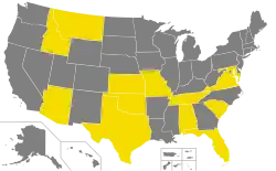 A partir de 2022, os seguintes estados oferecem a opção de obter uma placa especial de bandeira de Gadsden: Alabama, Arizona,[39] Flórida,[40][41] Kansas,[42] Maryland,[43] Missouri, Montana,[44] Oklahoma, Carolina do Sul, Tennessee,[45] Texas e Virgínia.[46][47]