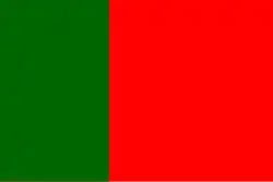 O campo da bandeira é bipartido em duas cores fundamentais: o verde e o vermelho.[4]