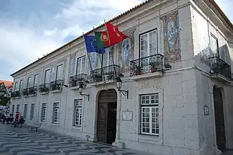 DescriçãoBipartida verticalmente em duas cores, o verde do lado da tralha e vermelho do lado do batente. No centro da linha divisória entre as cores, tem o escudo das armas de Portugal orlado de branco, assente sobre uma esfera armilar amarela e avivada de preto.