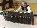 Os botões são feitos de galatita com olho de madrepérola. Podem se encontrar também botões de madeira. As chapas com as palhetas são presas aos castelos por pregos e não com cera como no acordeão. Outra diferença é que as chapas são inteiriças, ou seja, trazem várias palhetas rebitadas na mesma chapa enquanto no acordeão há apenas duas palhetas por chapa. Essa característica torna a afinação do instrumento muito trabalhosa e difícil.