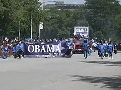 Partidários de Obama durante o desfile anual Bud Billiken Parade and Picnic, em 14 de agosto de 2004.