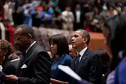 436. Amy Sullivan (29 de junho de 2009). «The Obamas Find a Church Home — Away from Home». Time. Consultado em 30 de novembro de 2016. Arquivado do original em 30 de outubro de 2011