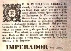 - ↑ Iuri (31 de março de 2023). «Há 200 anos, Nobre e Muito Leal Cidade de Barbacena». Folha de Barbacena. Consultado em 17 de outubro de 2023