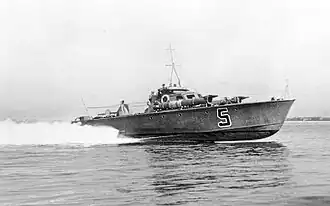 A Marinha dos EUA empregou os seus PT no Pacífico Sul, durante a Segunda Guerra Mundial. Os PT eram embarcações rápidas de madeira, usadas em muitas missões, além daquela para que foram, originalmente projetados: o ataque com torpedos. Desempenharam missões de reconhecimento, transporte, comunicações, busca e salvamento e lançamento de fumos de camuflagem. Nas ações da esquadra, os PT operavam em pequenos grupos ou, mesmo, isoladamente, no flagelamento das linhas de abastecimento inimigas. Quando, mais tarde, começaram a diminuir os navios grandes que poderiam ser atacados, em muitos PT foi retirada parte ou a totalidade dos seus tubos lança-torpedos, que foram substituídos por armas ligeiras adicionais, mais uteis no ataque a embarcações costeiras de abastecimento inimigas, provocando o isolamento das ilhas em poder dos Japoneses ao impedir-lhes o reabastecimento, reforço ou evacuação.