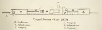 A primeira embarcação projetada, para disparar o torpedo automóvel foi o HMS Lightning, lançado em 1877, pela Royal Navy. Logo em 1878, os Franceses lançaram o Torpilleur Nº 1, o primeiro dos chamados "torpedeiros numerados", que havia sido encomendado ainda em 1875. O torpedeiro norueguês Rap tinha sido lançado em 1873, mas só foi armado com o torpedo automóvel em 1879, já que, antes, estava preparado para lançar torpedos rebocáveis.