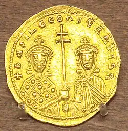 - ↑ Os impérios romano e bizantino tinham um número de governantes chamados Constantino, muitos dos quais geralmente não são contados usando números régios porque nunca foram imperadores seniores ou únicos. Cinco imperadores chamados Constantino governaram durante a dinastia macedônica: Constantino, o filho mais velho e co-governante de Basílio I; Constantino VII Porfirogênito; Constantino Lecapeno, filho e cogovernante de Romanos I; Constantino VIII; e Constantino IX Monômaco.[2]