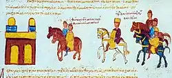 ![]() Réplica de miniatura de Basílio II em seu Menológio | |