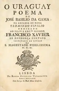 - ↑ Versiani, Carlos (2016). «A representação arcádica do índio brasileiro : O Uraguai, de José Basílio da Gama». Amerika. doi:10.4000/amerika.7266