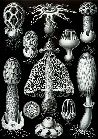 Basidiomycetes desenhados por Ernst Haeckel na obra Kunstformen der Natur (1904).