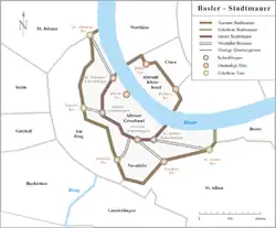A Muralha de Basileia é o conjunto de fortificações medievais da cidade que se desenvolveu entre 1080 e 1860. Em 1859, a Câmara Municipal decidiu destruir os muros e seus portões, que se tornaram desnecessários, para promover a expansão da cidade. Hoje, apenas três dos sete portões da segunda parede permanecem.