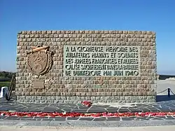 Um memorial de mármore da batalha ergue-se em Dunquerque. A inscrição em francês é traduzida como: "À gloriosa memória dos pilotos, marinheiros e soldados dos exércitos francês e aliados que se sacrificaram na Batalha de Dunquerque, maio-junho de 1940". Os mortos desaparecidos da BEF são homenageados no Memorial de Dunquerque, erguido pela Commonwealth War Graves Commission.[52]