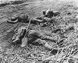 Embaixo, corpos de soldados japoneses mortos na batalha, em 15 de setembro de 1942.