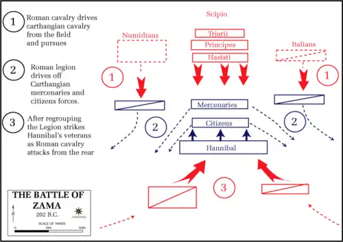 A Batalha de Zama, travada em 19 de outubro de 202 a.C.,[1] foi uma batalha decisiva da Segunda Guerra Púnica. O exército da República Romana, liderado por Cipião Africano, derrotou as forças de Cartago lideradas por Aníbal. Logo após essa derrota, o senado de Cartago assinou um tratado de paz, terminando assim uma guerra de quase 20 anos.