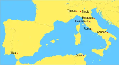 - ↑ Hickman, Kennedy (2 de janeiro de 2019). «Punic Wars: Battle of Zama». ThoughtCo (em inglês). Consultado em 30 de setembro de 2020
