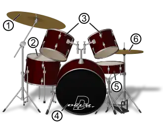 1 Prato de condução | 2 surdo | 3 Tom-tom