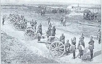 Peças em posição de tiro de uma bataria de campanha do Exército Alemão, no início do século XX.