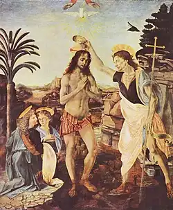 O Batismo de Cristo por Andrea del Verrocchio e Leonardo da Vinci