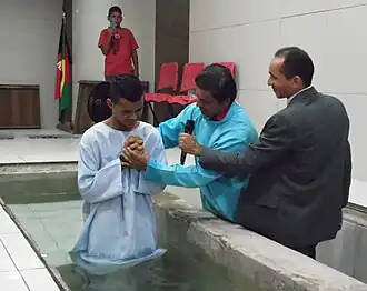 Para algumas igrejas evangélicas, notavelmente batistas, o batismo do Espírito Santo ocorre durante o novo nascimento, após o arrependimento e a escolha de seguir Jesus e antes do batismo nas águas. [1] [2][3] É o início da vida cristã. [4] Intervém durante um tempo de oração, individual ou coletiva.