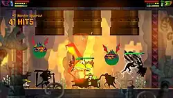 O gênero beat 'em up também teve um ressurgimento no desenvolvimento de jogos independentes, resultando em títulos como Guacamelee! (2013) e sua sequência Guacamelee! 2 (2018), ambos conhecidos por sua jogabilidade híbrida de beat 'em up em 2D e Metroidvania.[108][109] Outros jogos independentes do gênero são, por exemplo, The Takeover (2020),[110] Ninjin: Clash of Carrots (2018)[111] e Fight'N Rage (2017).[112]