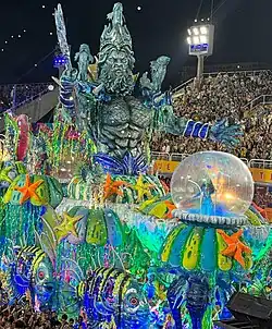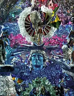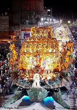 Alegoria da Estátua de Zeus em Olímpia, uma das "oito maravilhas" apresentadas no desfile da Beija-Flor no carnaval de 1981.