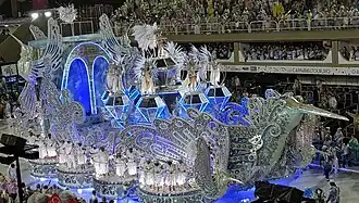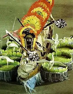 Desfile da Beija-Flor no carnaval de 1976, com destaque para a premiada alegoria do casal sonhando.
