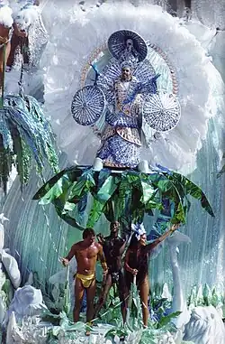 Alegorias com Pinah e Luana no desfile campeão do carnaval de 1983.