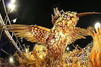 O beija-flor, símbolo da escola, no carro abre-alas do desfile do carnaval de 2007.
