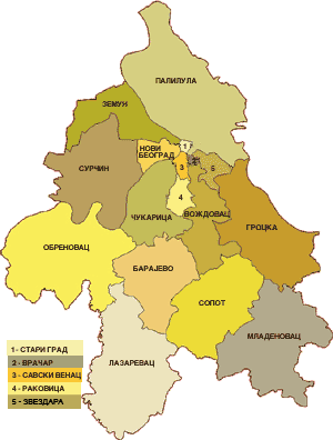 - 1 2 3 «Urban Municipalities» [Municípios Urbanos]. Site Oficial da Cidade de Belgrado (em inglês). Cidade de Belgrado. Consultado em 24 de agosto de 2018