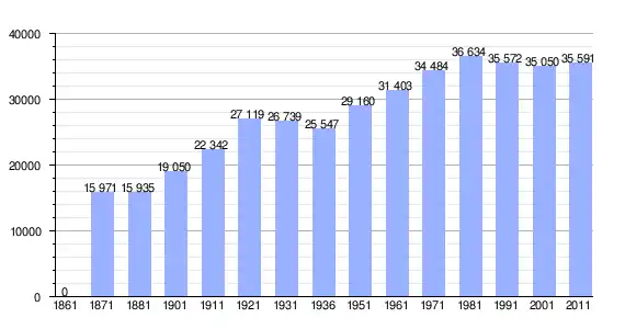 | Variação demográfica do município entre 1861 e 2011[3] |