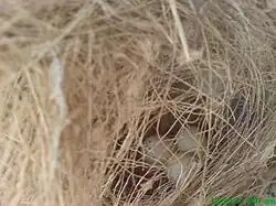 Põe cerca de três a quatro ovos cônicos e brancos com pintinhas pretas (lembrando ovos de codorna). Eles são brancos logo após a postura, mas após um tempo passam a ficar amarelados. Os ovos medem 31 x 21 milímetros e são incubados pelo casal. São cônicos com pintinhas pretas como os ovos de codorna, após a eclosão seu desenvolvimento é altricial (nasce quase sem penas com olhos fechados, não voa nem anda): [14]