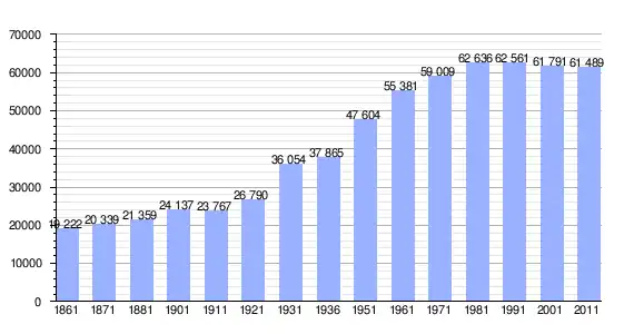 | Variação demográfica do município entre 1861 e 2011[3] |