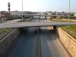 A Praça al Shajara em 2013- A ponte Jeliana com a baixa de Bengasi e o edifício Da'wah al-Islamiyah ao fundo