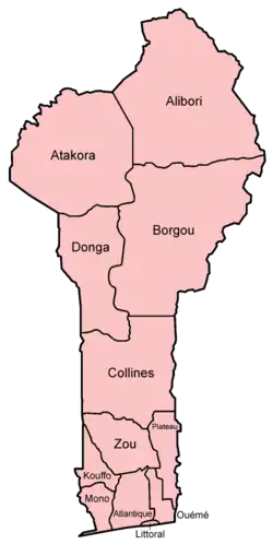 - 1 2 «Departments of Benin» (em inglês). Statoids. Consultado em 26 de novembro de 2019