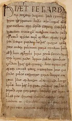 O único manuscrito existente do Beowulf data do século XI, mas acredita-se que o poema original possa ter sido escrito antes. A narrativa é lendária, mas alguns eventos e personagens possivelmente históricos dos séculos V e VI são também referidos no texto.[1]
