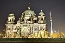 Panorama urbano com Rio Spree, Ilha dos Museus e Torre de TV de Berlim em destaque Coluna da Vitória Palácio de Charlottenburg Rotes Rathaus Catedral de Berlim Praça Potsdam | |
