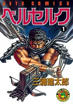 ![]() Capa do primeiro volume original japonês do mangá, mostrando o protagonista Guts. | |